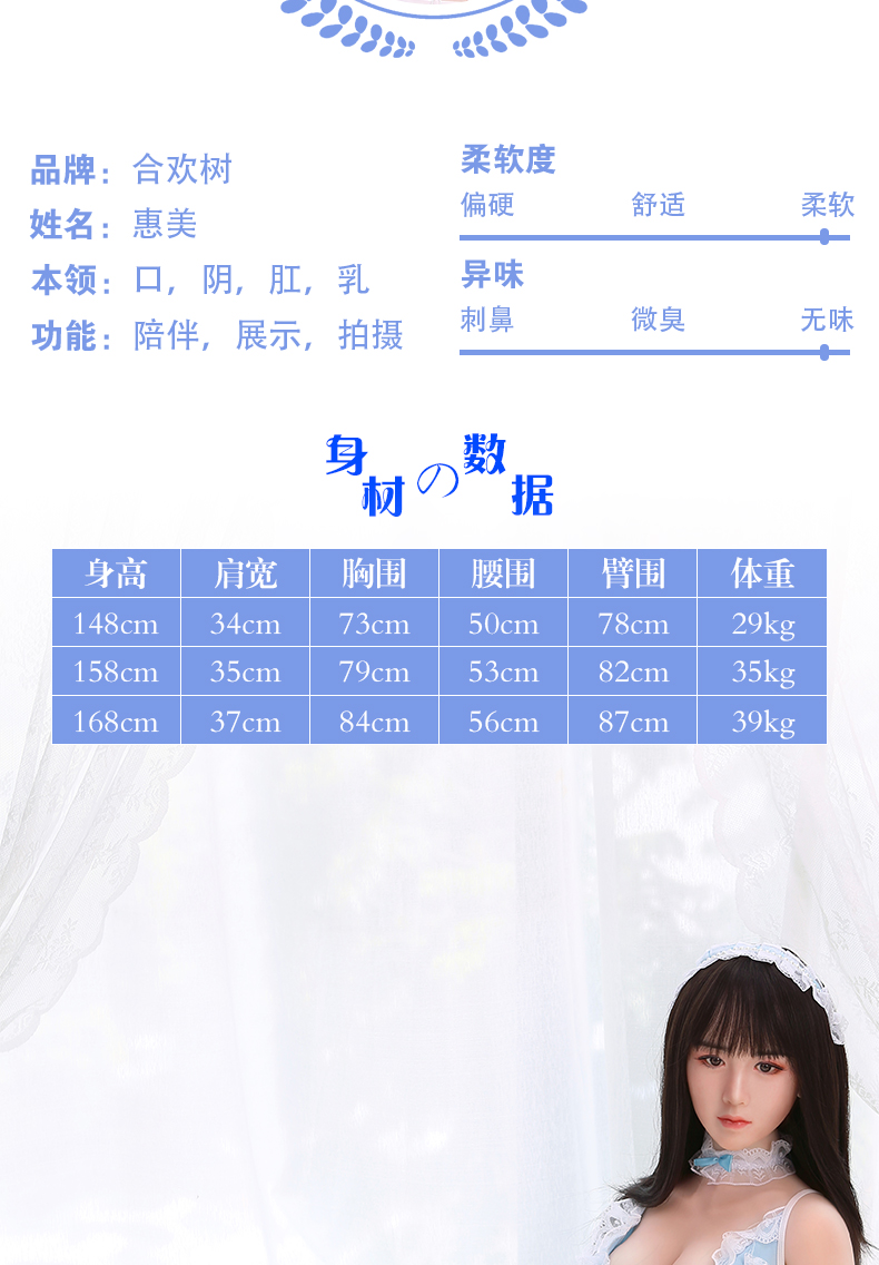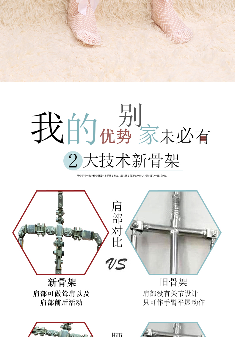 我们的娃娃全部都是全实体带骨架的实体娃娃,网络上面10元到400元的娃娃或者800元左右1.6米身高或者1.7米身高的娃娃,全部都是充气娃娃或者半充气娃娃。商家会拿一些假图片、假视频欺骗您说是实体娃娃!