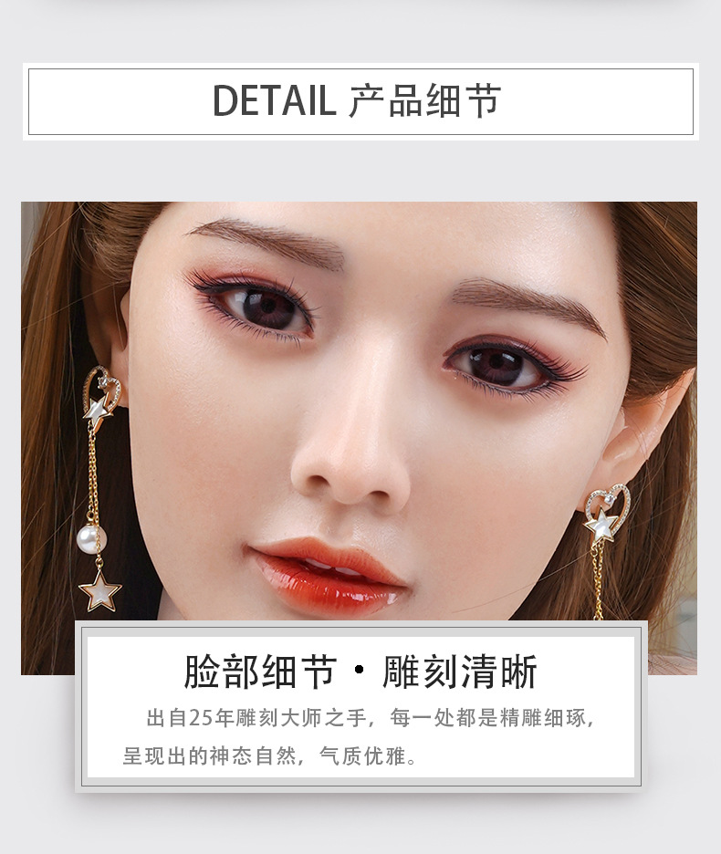 我们工厂成立于2013年,我们拥有10多年的实体娃娃生产经验,是行业当中的佼佼者,我们拥有21年经验的艺术雕刻大师,用独特的手工雕刻将实体娃娃的脸型精细运用到极致,让您看着就很有感觉,整个立体五官轮廓也是非常精致漂亮可爱,那种感觉叫做刚刚好,特别是穿好丝袜,穿上性感情趣衣服的时候,视觉上跟真人没什么区别,那前凸后翘的火辣身段,修长白晳的大美腿,完美白晳无暇的肌肤,清澈明亮的瞳孔,弯弯的柳叶眉,性感的双唇如玫瑰花瓣娇嫩欲滴,长长的睫毛微微地颤动着,身体的毛孔和血管青筋若隐若现,酥胸软似云,当您触摸她的时候,您会发现,她的手感其实比真人还要香!这不就是一个真人吗?