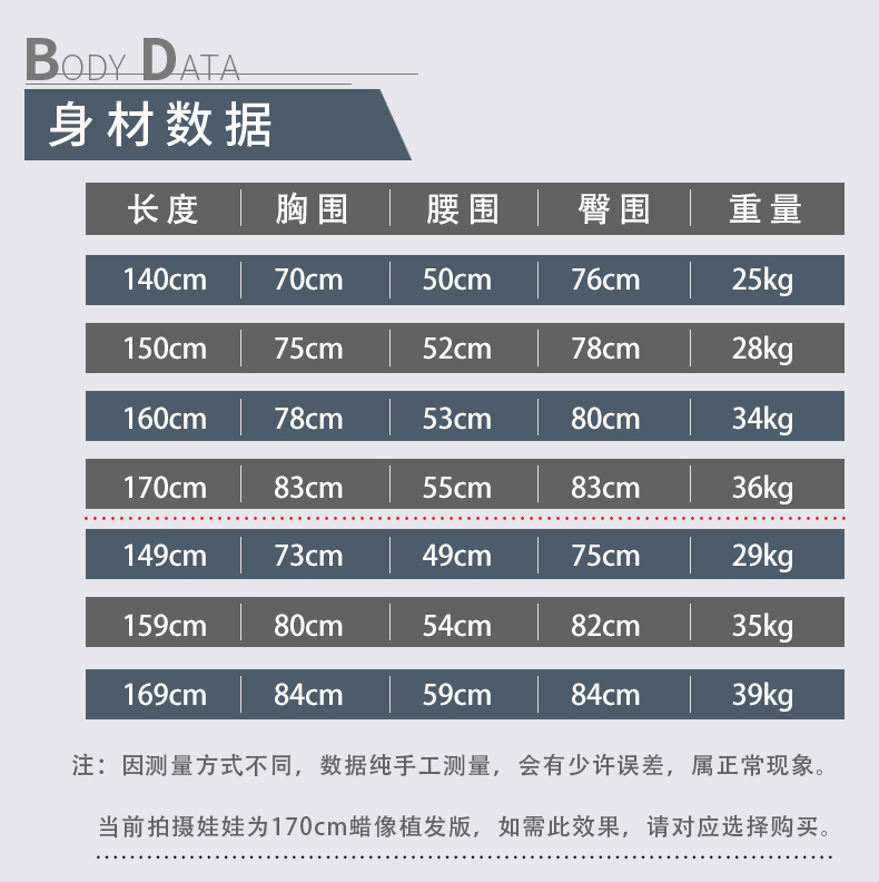我们的娃娃全部都是标准身材的娃娃,网络上面价格便宜的,基本上都是瘦身版,也就是比标准身材要瘦小很多,因为材料用得少,所以价格自然会便宜一些,如果您不介意,也想购买瘦身版,那么我们也可以制作,您可以告诉我,我也可以便宜一点卖给您!
