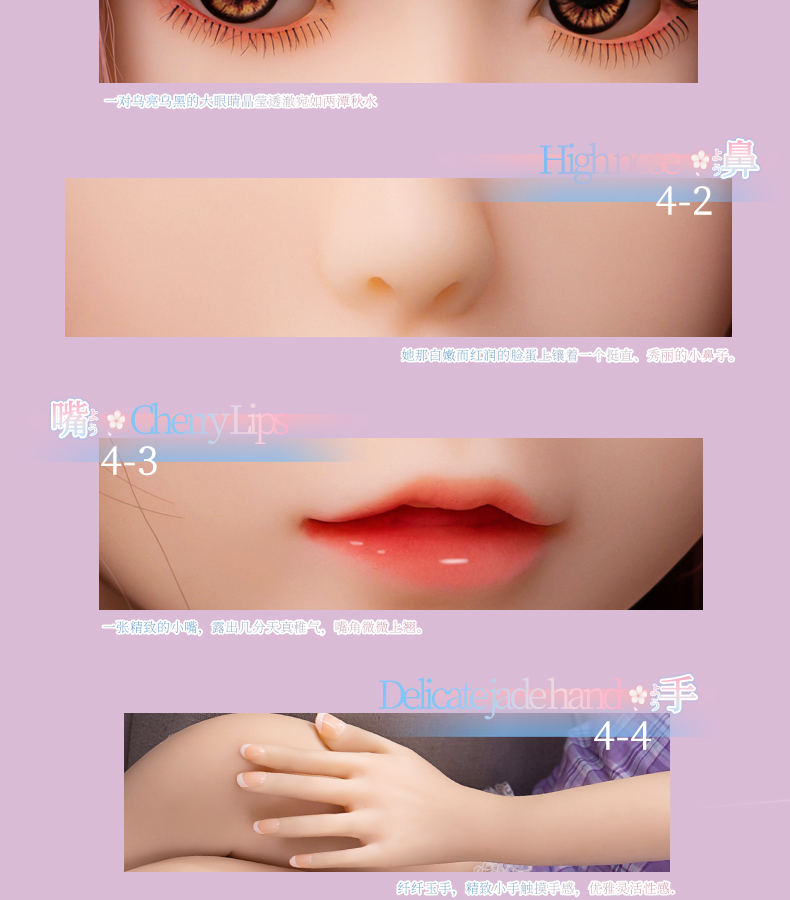 我们工厂成立于2013年,我们拥有10多年的实体娃娃生产经验,是行业当中的佼佼者,我们拥有21年经验的艺术雕刻大师,用独特的手工雕刻将实体娃娃的脸型精细运用到极致,让您看着就很有感觉,整个立体五官轮廓也是非常精致漂亮可爱,那种感觉叫做刚刚好,特别是穿好丝袜,穿上性感情趣衣服的时候,视觉上跟真人没什么区别,那前凸后翘的火辣身段,修长白晳的大美腿,完美白晳无暇的肌肤,清澈明亮的瞳孔,弯弯的柳叶眉,性感的双唇如玫瑰花瓣娇嫩欲滴,长长的睫毛微微地颤动着,身体的毛孔和血管青筋若隐若现,酥胸软似云,当您触摸她的时候,您会发现,她的手感其实比真人还要香!这不就是一个真人吗?
