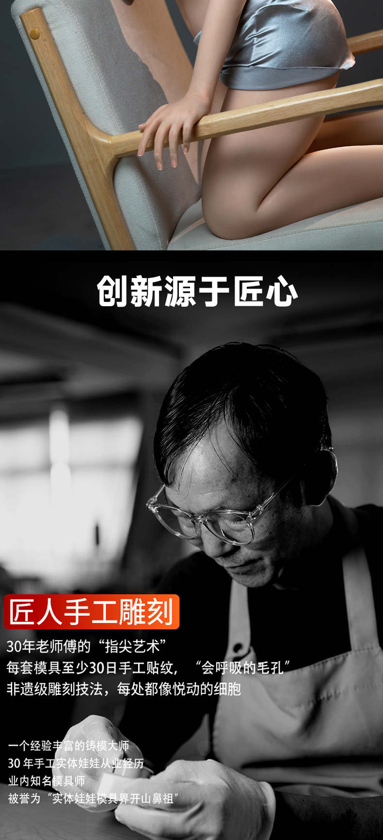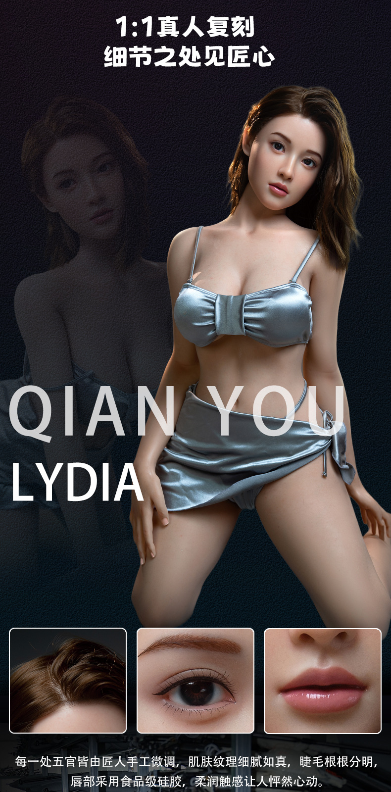 我们工厂成立于2013年,我们拥有10多年的实体娃娃生产经验,是行业当中的佼佼者,我们拥有21年经验的艺术雕刻大师,用独特的手工雕刻将实体娃娃的脸型精细运用到极致,让您看着就很有感觉,整个立体五官轮廓也是非常精致漂亮可爱,那种感觉叫做刚刚好,特别是穿好丝袜,穿上性感情趣衣服的时候,视觉上跟真人没什么区别,那前凸后翘的火辣身段,修长白晳的大美腿,完美白晳无暇的肌肤,清澈明亮的瞳孔,弯弯的柳叶眉,性感的双唇如玫瑰花瓣娇嫩欲滴,长长的睫毛微微地颤动着,身体的毛孔和血管青筋若隐若现,酥胸软似云,当您触摸她的时候,您会发现,她的手感其实比真人还要香!这不就是一个真人吗?