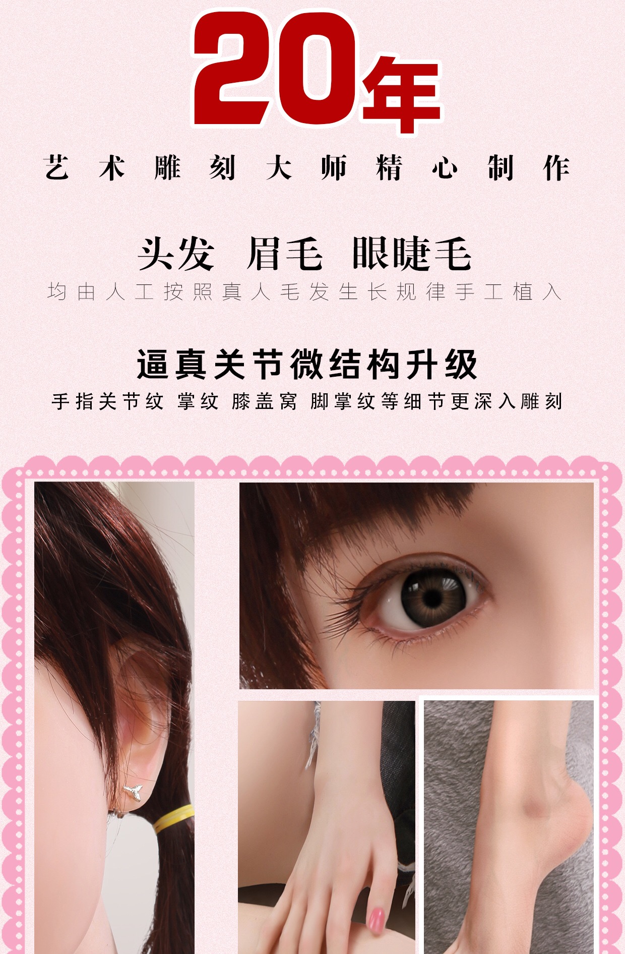 我们工厂成立于2013年,我们拥有10多年的实体娃娃生产经验,是行业当中的佼佼者,我们拥有21年经验的艺术雕刻大师,用独特的手工雕刻将实体娃娃的脸型精细运用到极致,让您看着就很有感觉,整个立体五官轮廓也是非常精致漂亮可爱,那种感觉叫做刚刚好,特别是穿好丝袜,穿上性感情趣衣服的时候,视觉上跟真人没什么区别,那前凸后翘的火辣身段,修长白晳的大美腿,完美白晳无暇的肌肤,清澈明亮的瞳孔,弯弯的柳叶眉,性感的双唇如玫瑰花瓣娇嫩欲滴,长长的睫毛微微地颤动着,身体的毛孔和血管青筋若隐若现,酥胸软似云,当您触摸她的时候,您会发现,她的手感其实比真人还要香!这不就是一个真人吗?