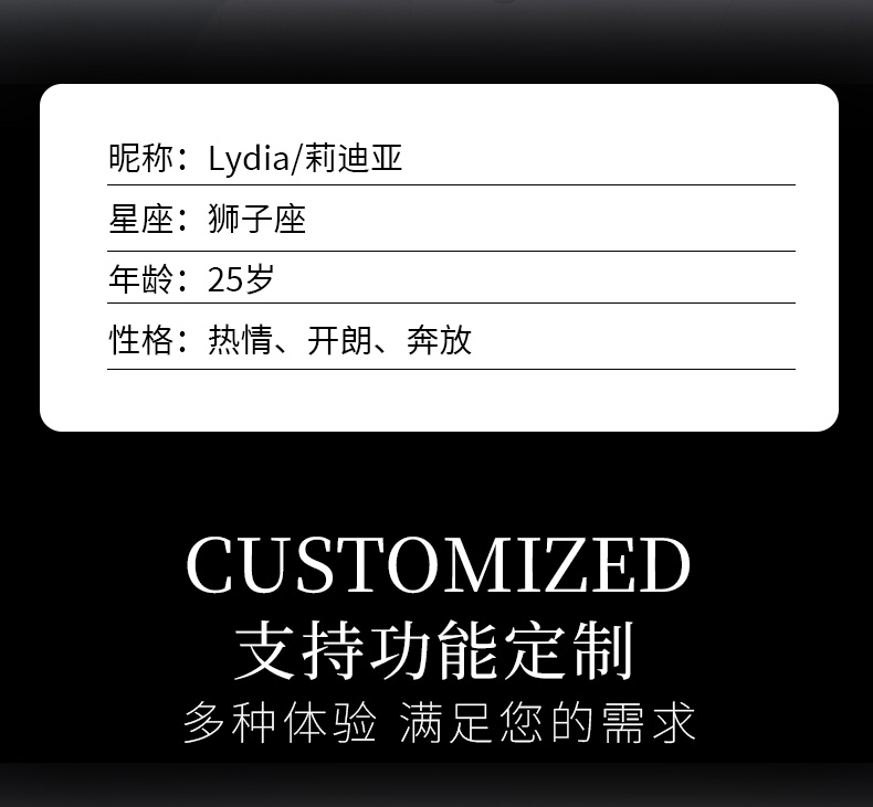 我们工厂的娃娃全部均为实体娃娃(非充气),有女用款,也有男用款,性感御姐,美女老师,办公室女神,萝莉,二次元,少女卡通,运动瑜伽翘臀,丰满大胸,小胸,黑人,白人,黄皮肤,亚洲,欧美,非洲的都有,还支持您来样私人订制,只要您想要,没有我们做不到,每个实体娃娃美女,每个实体娃娃帅哥都可以让您体验不一般的感觉!是您的私人专属尤物!实物其实比图片和视频还要动人!漂亮!这需要您来亲身体验!