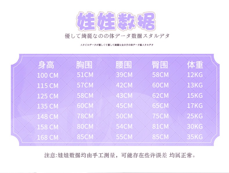 我们的娃娃全部都是标准身材的娃娃,网络上面价格便宜的,基本上都是瘦身版,也就是比标准身材要瘦小很多,因为材料用得少,所以价格自然会便宜一些,如果您不介意,也想购买瘦身版,那么我们也可以制作,您可以告诉我,我也可以便宜一点卖给您!