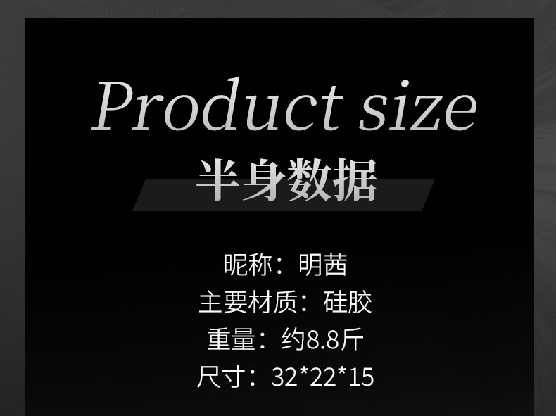 我们工厂成立于2013年,我们拥有10多年的实体娃娃生产经验,是行业当中的佼佼者,我们拥有21年经验的艺术雕刻大师,用独特的手工雕刻将实体娃娃的脸型精细运用到极致,让您看着就很有感觉,整个立体五官轮廓也是非常精致漂亮可爱,那种感觉叫做刚刚好,特别是穿好丝袜,穿上性感情趣衣服的时候,视觉上跟真人没什么区别,那前凸后翘的火辣身段,修长白晳的大美腿,完美白晳无暇的肌肤,清澈明亮的瞳孔,弯弯的柳叶眉,性感的双唇如玫瑰花瓣娇嫩欲滴,长长的睫毛微微地颤动着,身体的毛孔和血管青筋若隐若现,酥胸软似云,当您触摸她的时候,您会发现,她的手感其实比真人还要香!这不就是一个真人吗?