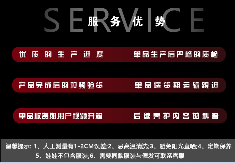 我们的娃娃全部都是精致妆容的娃娃,网络上面价格便宜的,妆容并不是精致的妆容,而是简单的妆容,商家发给您的图片和视频都是盗用别人的,所以看着特别的好看,但您收到的实物却特别的难看!