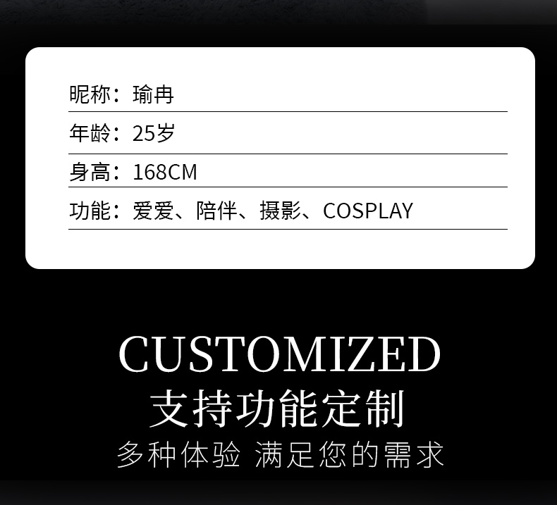 实体娃娃有什么功能呢?其实就是一个1比1的仿真人,可以作为一个成人情趣用品使用,可以爱爱,可以解决单身男女的某种需求,还可以作为手办,慰藉,陪伴展示,为孤独群体提供更好的归属感,是一个非常理想的成人伴侣。还可以成为摄影爱好者的完美模特。还可以cosplay扮演,为追求完美的人士提供了一个最佳的选择。人是不完美的,但每个人想象中的另一半都是完美高于生活的,而实体娃娃是完美肉体的象征,是属于一个完美的人!