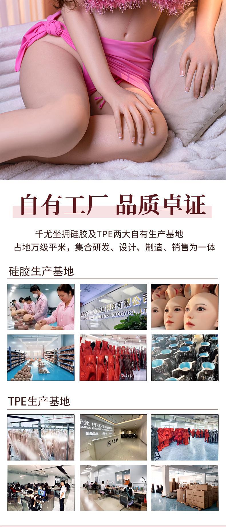 我们工厂成立于2013年,我们拥有10多年的实体娃娃生产经验,是行业当中的佼佼者,我们拥有21年经验的艺术雕刻大师,用独特的手工雕刻将实体娃娃的脸型精细运用到极致,让您看着就很有感觉,整个立体五官轮廓也是非常精致漂亮可爱,那种感觉叫做刚刚好,特别是穿好丝袜,穿上性感情趣衣服的时候,视觉上跟真人没什么区别,那前凸后翘的火辣身段,修长白晳的大美腿,完美白晳无暇的肌肤,清澈明亮的瞳孔,弯弯的柳叶眉,性感的双唇如玫瑰花瓣娇嫩欲滴,长长的睫毛微微地颤动着,身体的毛孔和血管青筋若隐若现,酥胸软似云,当您触摸她的时候,您会发现,她的手感其实比真人还要香!这不就是一个真人吗?