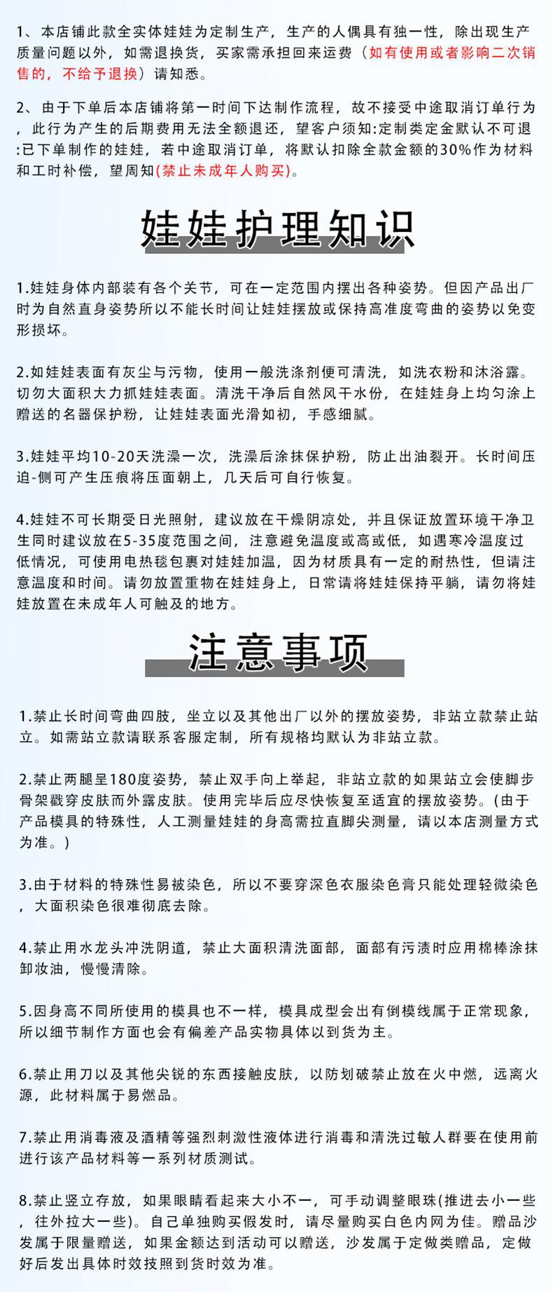 我们的娃娃全部都是精致妆容的娃娃,网络上面价格便宜的,妆容并不是精致的妆容,而是简单的妆容,商家发给您的图片和视频都是盗用别人的,所以看着特别的好看,但您收到的实物却特别的难看!
