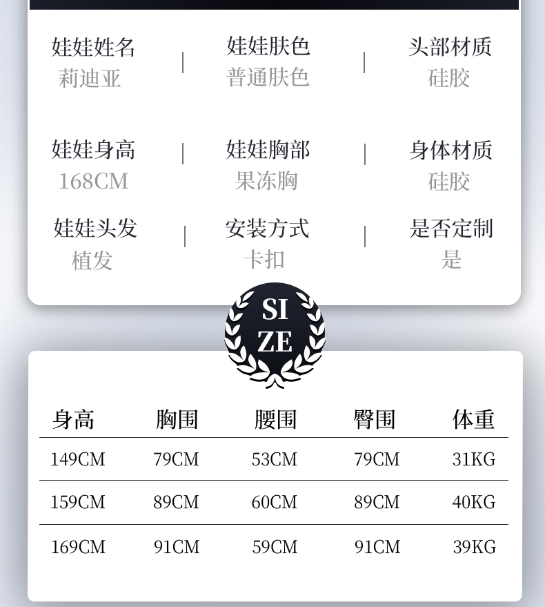 我们工厂成立于2013年,我们拥有10多年的实体娃娃生产经验,是行业当中的佼佼者,我们拥有21年经验的艺术雕刻大师,用独特的手工雕刻将实体娃娃的脸型精细运用到极致,让您看着就很有感觉,整个立体五官轮廓也是非常精致漂亮可爱,那种感觉叫做刚刚好,特别是穿好丝袜,穿上性感情趣衣服的时候,视觉上跟真人没什么区别,那前凸后翘的火辣身段,修长白晳的大美腿,完美白晳无暇的肌肤,清澈明亮的瞳孔,弯弯的柳叶眉,性感的双唇如玫瑰花瓣娇嫩欲滴,长长的睫毛微微地颤动着,身体的毛孔和血管青筋若隐若现,酥胸软似云,当您触摸她的时候,您会发现,她的手感其实比真人还要香!这不就是一个真人吗?