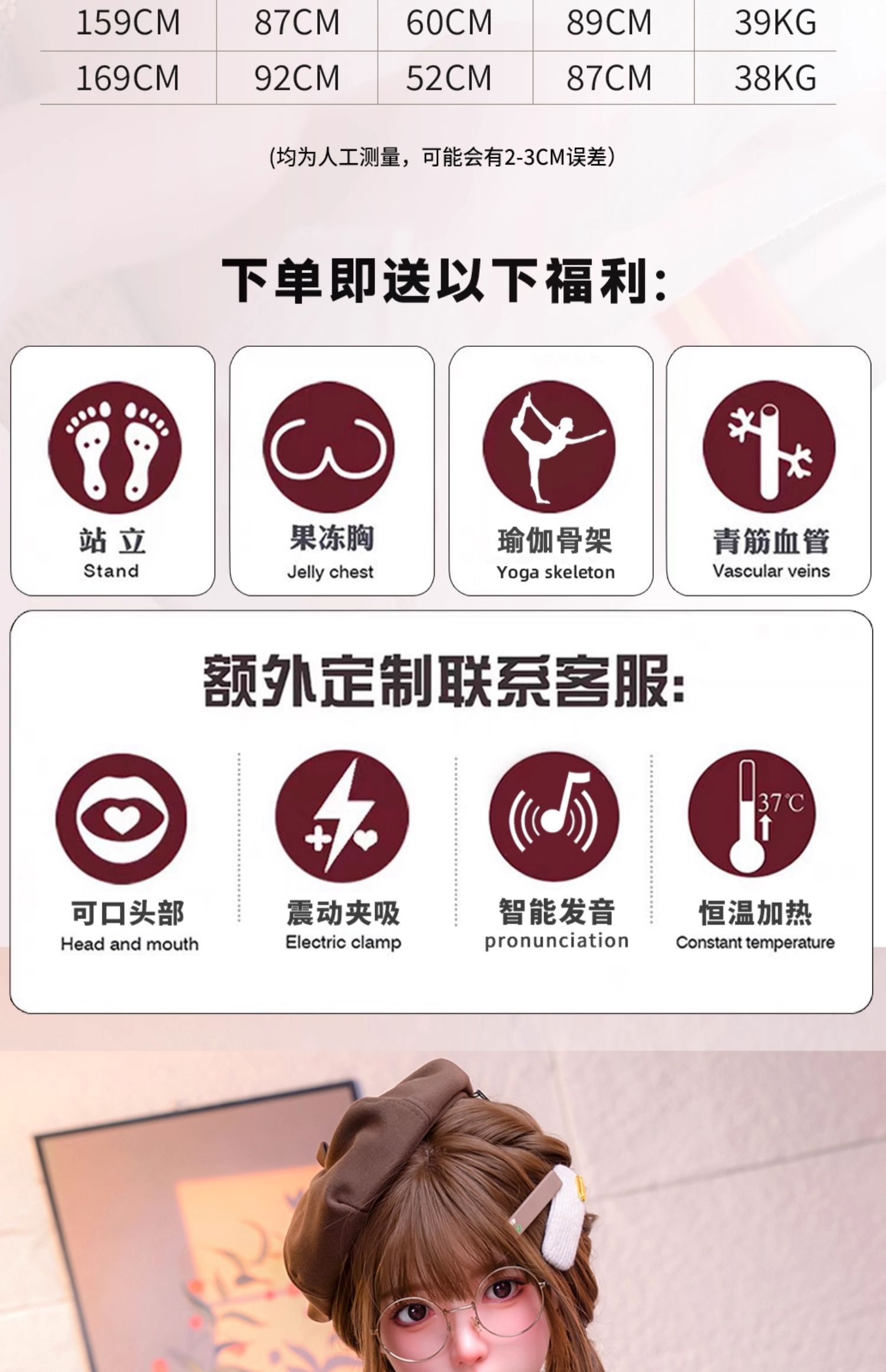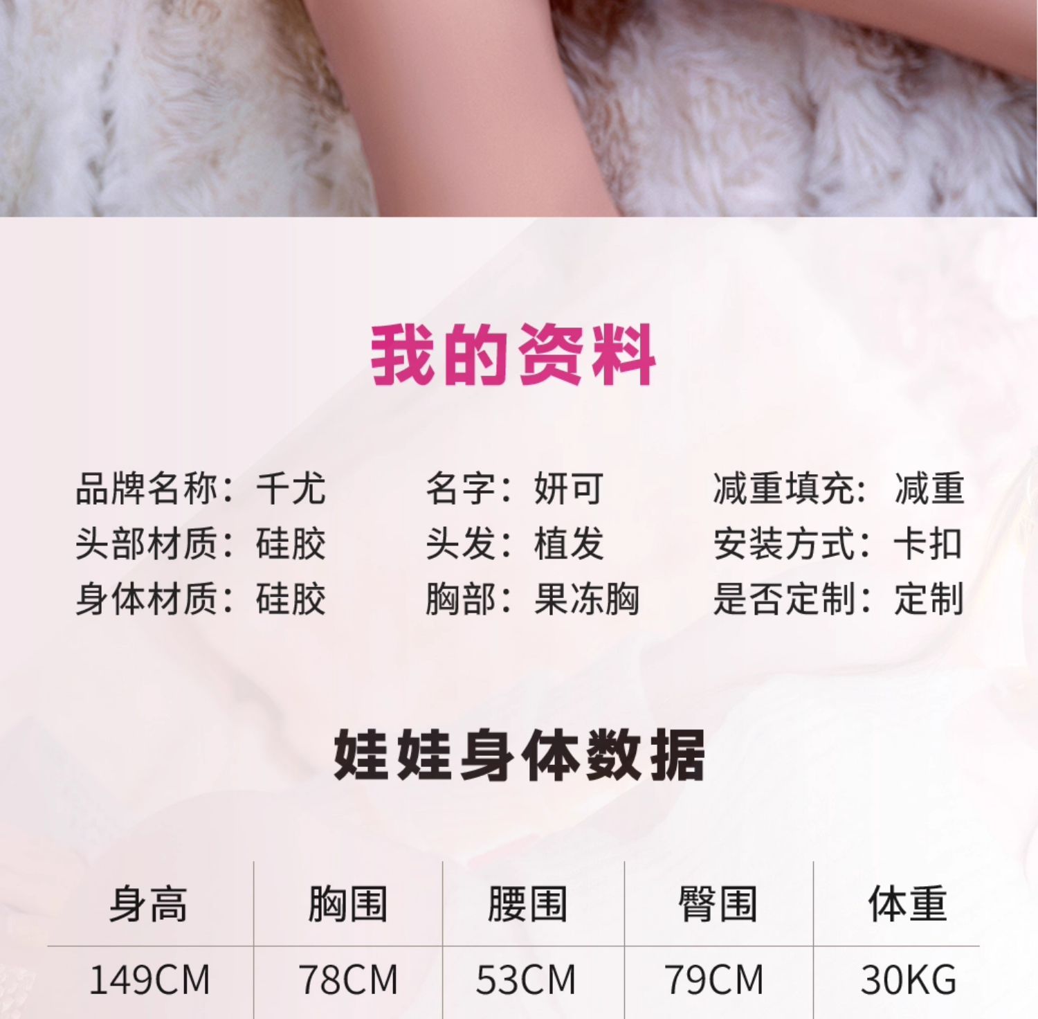 我们的娃娃全部都是全实体带骨架的实体娃娃,网络上面10元到400元的娃娃或者800元左右1.6米身高或者1.7米身高的娃娃,全部都是充气娃娃或者半充气娃娃。商家会拿一些假图片、假视频欺骗您说是实体娃娃!