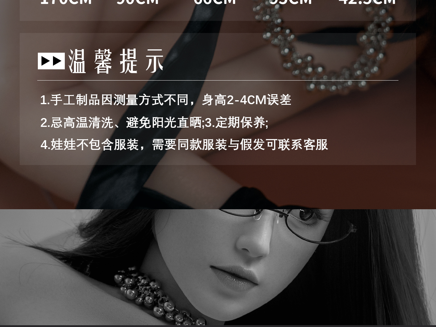 我们的娃娃全部都是全实体带骨架的实体娃娃,网络上面10元到400元的娃娃或者800元左右1.6米身高或者1.7米身高的娃娃,全部都是充气娃娃或者半充气娃娃。商家会拿一些假图片、假视频欺骗您说是实体娃娃!