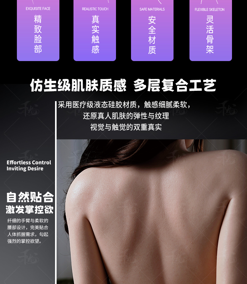 我们工厂成立于2013年,我们拥有10多年的实体娃娃生产经验,是行业当中的佼佼者,我们拥有21年经验的艺术雕刻大师,用独特的手工雕刻将实体娃娃的脸型精细运用到极致,让您看着就很有感觉,整个立体五官轮廓也是非常精致漂亮可爱,那种感觉叫做刚刚好,特别是穿好丝袜,穿上性感情趣衣服的时候,视觉上跟真人没什么区别,那前凸后翘的火辣身段,修长白晳的大美腿,完美白晳无暇的肌肤,清澈明亮的瞳孔,弯弯的柳叶眉,性感的双唇如玫瑰花瓣娇嫩欲滴,长长的睫毛微微地颤动着,身体的毛孔和血管青筋若隐若现,酥胸软似云,当您触摸她的时候,您会发现,她的手感其实比真人还要香!这不就是一个真人吗?