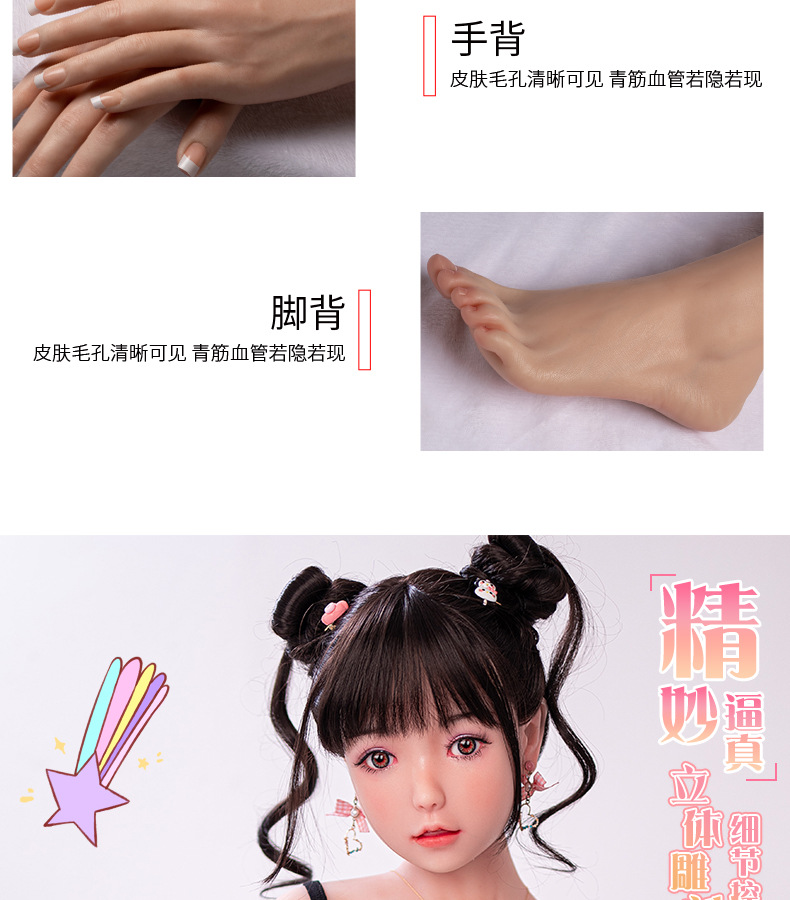 我们工厂成立于2013年,我们拥有10多年的实体娃娃生产经验,是行业当中的佼佼者,我们拥有21年经验的艺术雕刻大师,用独特的手工雕刻将实体娃娃的脸型精细运用到极致,让您看着就很有感觉,整个立体五官轮廓也是非常精致漂亮可爱,那种感觉叫做刚刚好,特别是穿好丝袜,穿上性感情趣衣服的时候,视觉上跟真人没什么区别,那前凸后翘的火辣身段,修长白晳的大美腿,完美白晳无暇的肌肤,清澈明亮的瞳孔,弯弯的柳叶眉,性感的双唇如玫瑰花瓣娇嫩欲滴,长长的睫毛微微地颤动着,身体的毛孔和血管青筋若隐若现,酥胸软似云,当您触摸她的时候,您会发现,她的手感其实比真人还要香!这不就是一个真人吗?