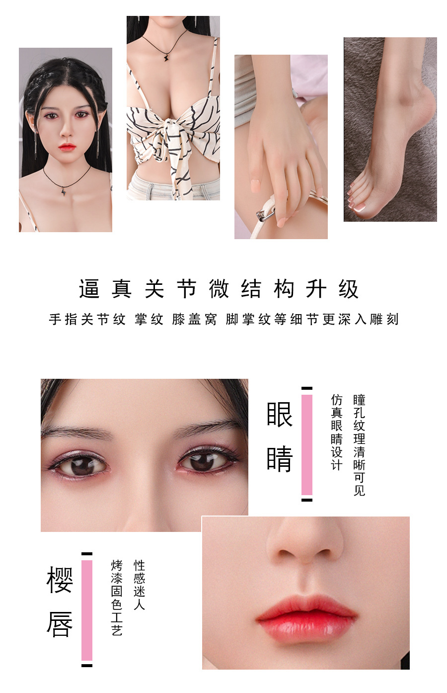 我们工厂成立于2013年,我们拥有10多年的实体娃娃生产经验,是行业当中的佼佼者,我们拥有21年经验的艺术雕刻大师,用独特的手工雕刻将实体娃娃的脸型精细运用到极致,让您看着就很有感觉,整个立体五官轮廓也是非常精致漂亮可爱,那种感觉叫做刚刚好,特别是穿好丝袜,穿上性感情趣衣服的时候,视觉上跟真人没什么区别,那前凸后翘的火辣身段,修长白晳的大美腿,完美白晳无暇的肌肤,清澈明亮的瞳孔,弯弯的柳叶眉,性感的双唇如玫瑰花瓣娇嫩欲滴,长长的睫毛微微地颤动着,身体的毛孔和血管青筋若隐若现,酥胸软似云,当您触摸她的时候,您会发现,她的手感其实比真人还要香!这不就是一个真人吗?